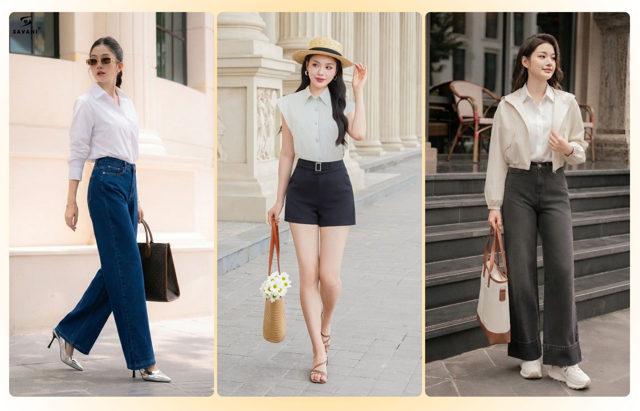 Combo “quốc dân” cho chị em công sở chính là sơ mi và quần âu. Sự chỉn chu, tinh tế của bộ đôi này chưa bao giờ lỗi mốt. Bạn có thể chọn quần âu ống suông để tôn chiều cao, sơ vin gọn gàng để tạo tổng thể thon gọn. Phụ kiện tối giản như đồng hồ hoặc túi tote sẽ hoàn thiện outfit một cách sang trọng.
