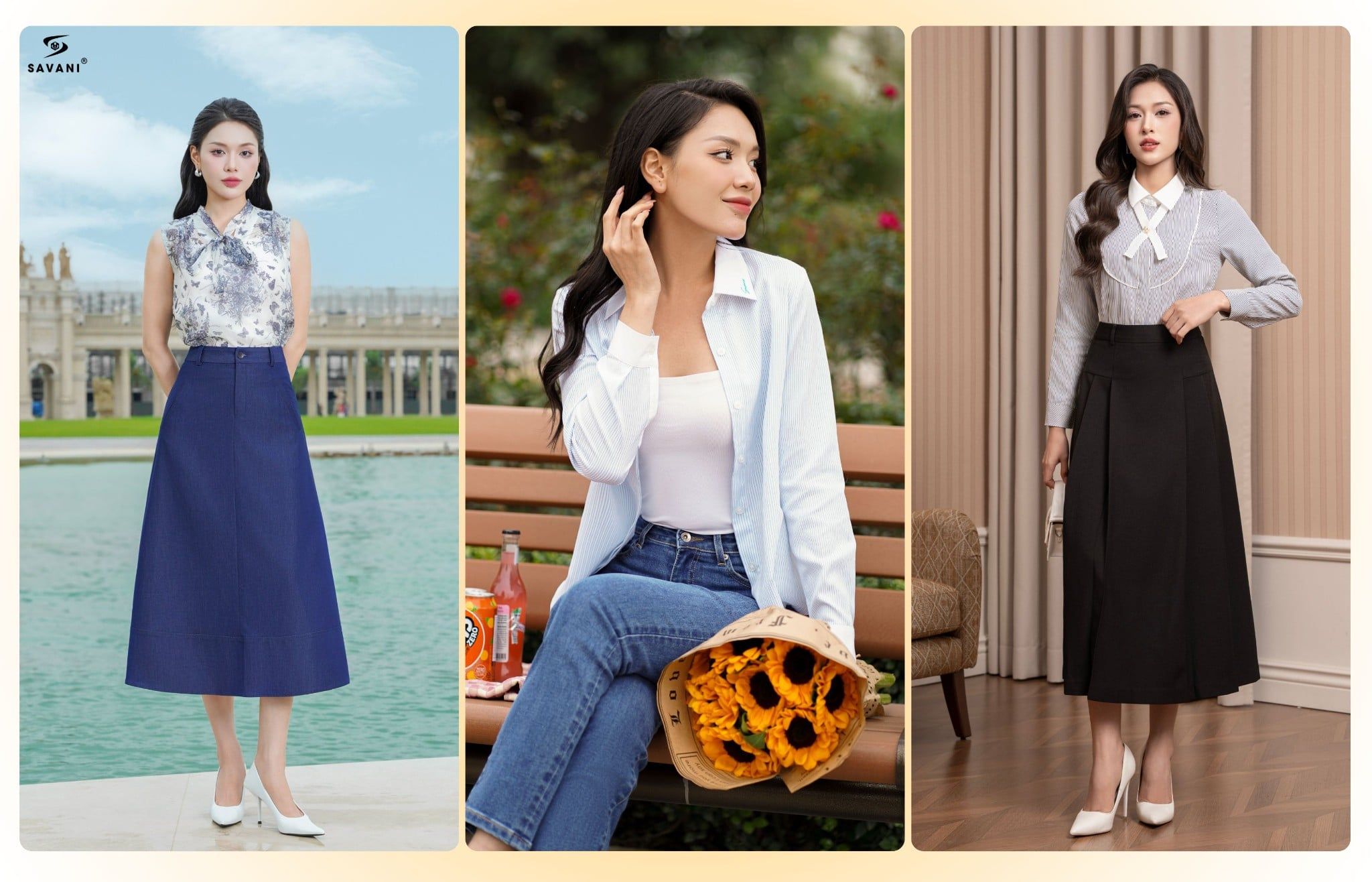 Sự kết hợp giữa sơ mi và váy bút chì luôn mang đến vẻ thanh lịch, hiện đại, rất phù hợp môi trường công sở. Bạn có thể sơ vin gọn gàng để làm nổi bật vòng eo hoặc chọn dáng sơ mi mềm rũ để tổng thể nữ tính hơn. Mix thêm giày cao gót hoặc giày slingback là bạn đã có ngay outfit thanh lịch mà vẫn quyến rũ.