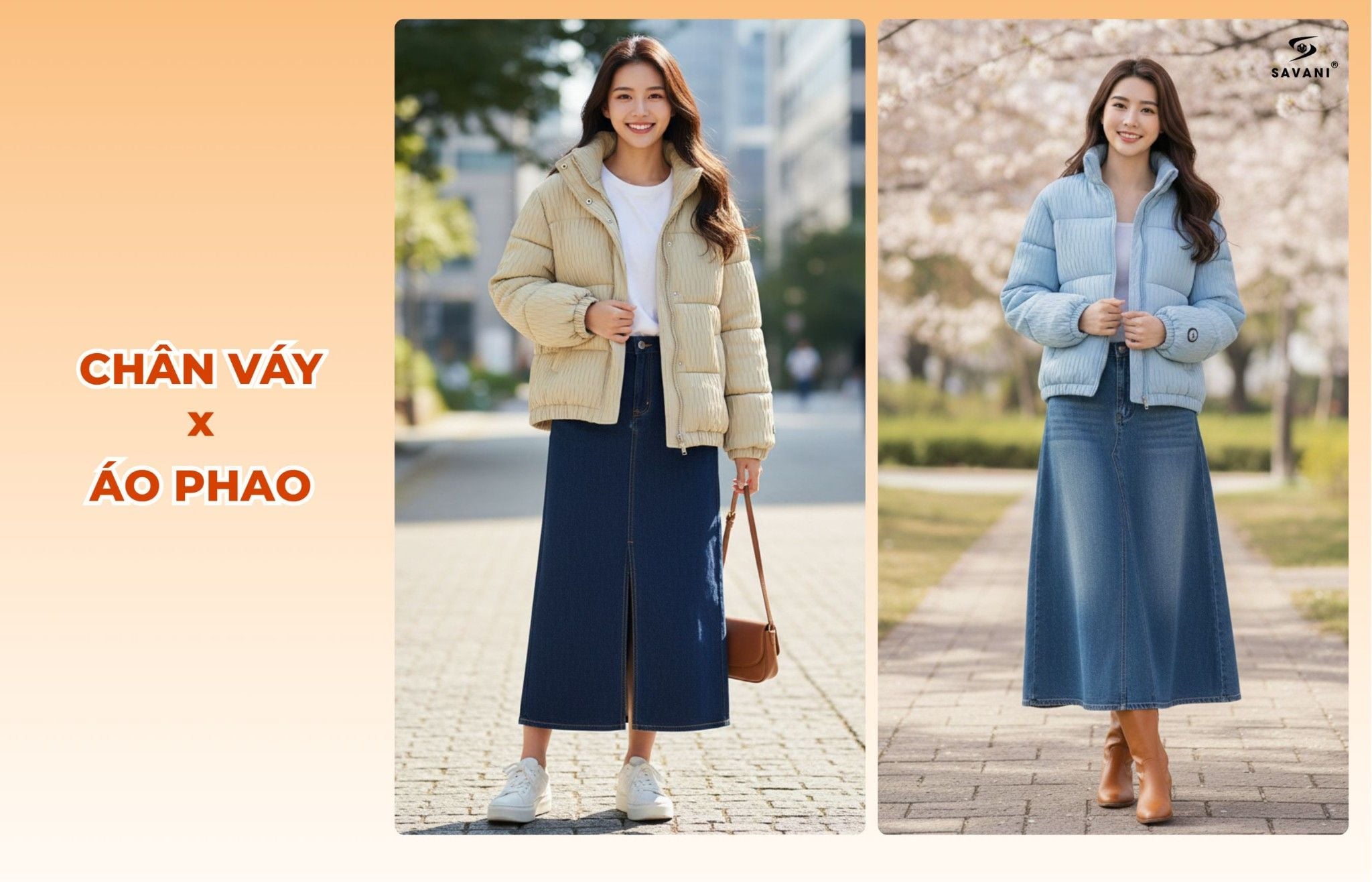 Chân váy dài + Áo phao