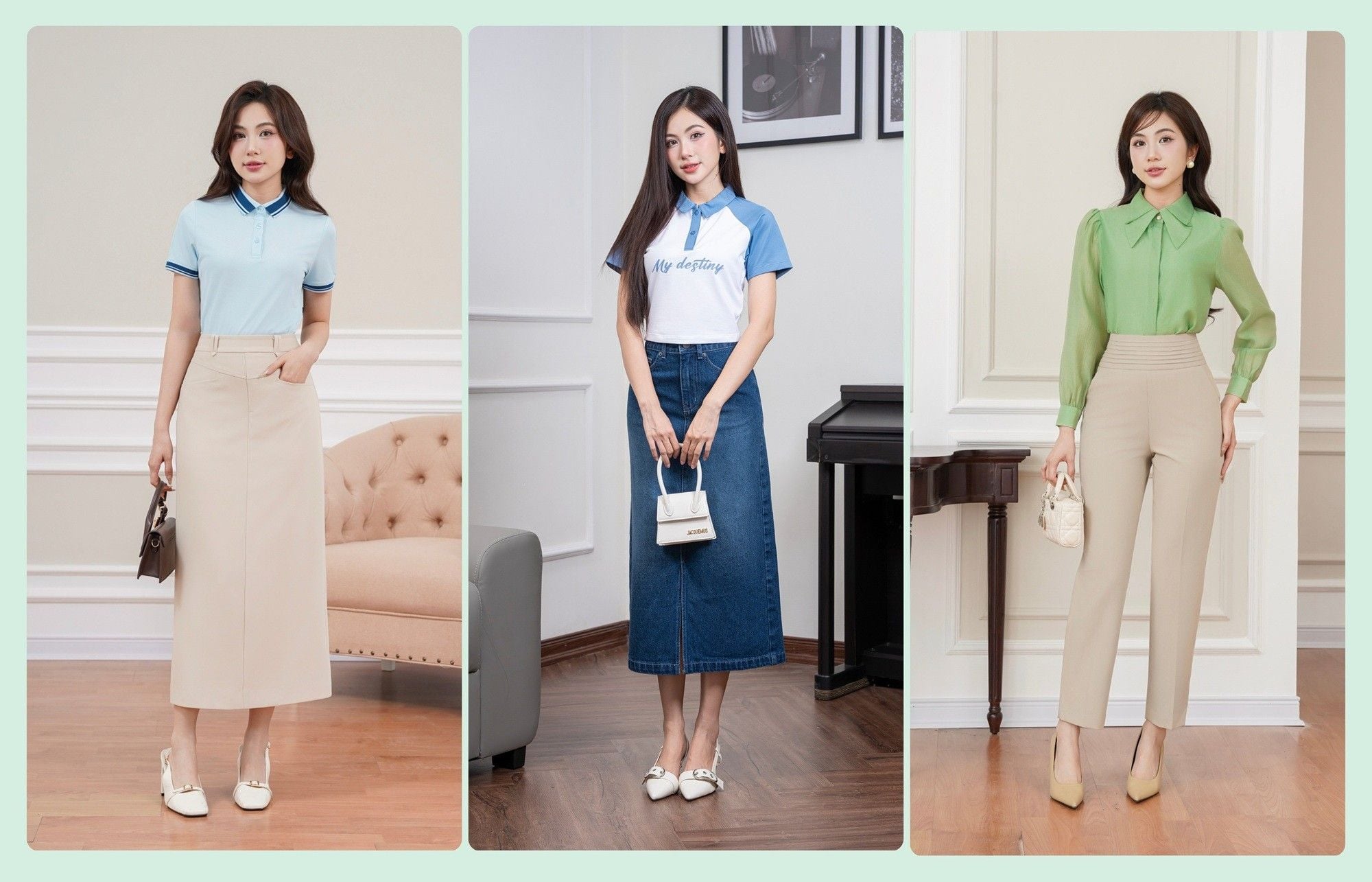 Nữ sinh năm 2002 thường lựa chọn phong cách trẻ trung, hiện đại khi đi làm. Vì vậy có thể phối áo sơ mi hoặc polo với chân váy hoặc quần âu ống suông. Ngoài ra, một chiếc váy liền tông xanh cũng là lựa chọn lý tưởng, tạo cảm giác chuyên nghiệp nhưng không kém phần nữ tính. Phụ kiện như túi xách nâu hoặc giày cao gót be sẽ là điểm nhấn nhẹ nhàng, hợp phong thủy mà vẫn tôn dáng.
