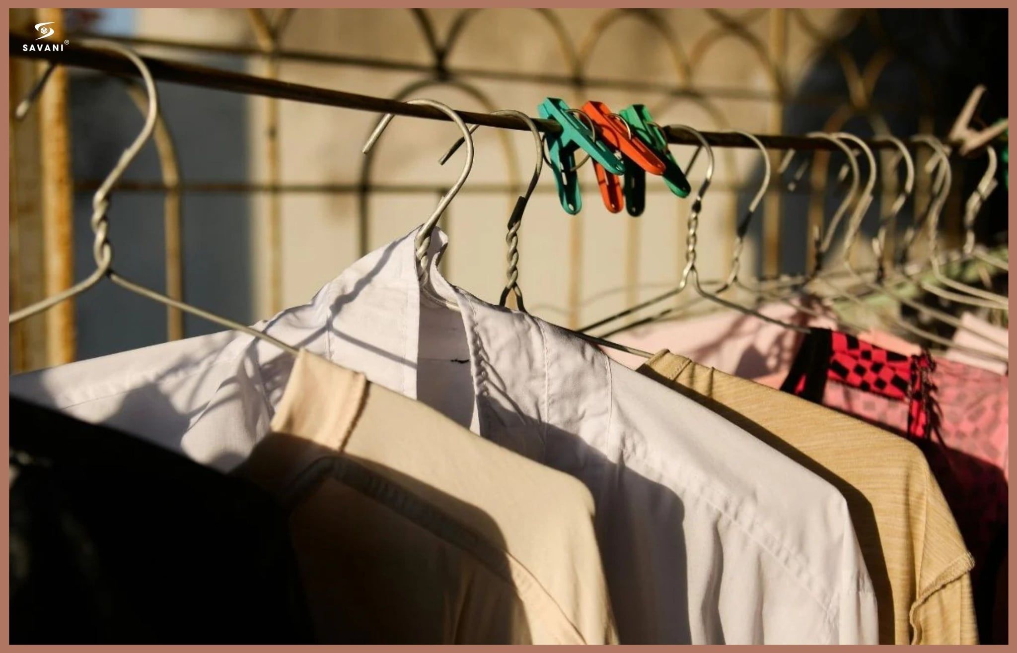Khi phơi áo linen, bạn nên treo trên móc có độ cong tự nhiên, vuốt phẳng phần cổ áo, vai và thân áo để hạn chế nếp nhăn hình thành trong quá trình khô.