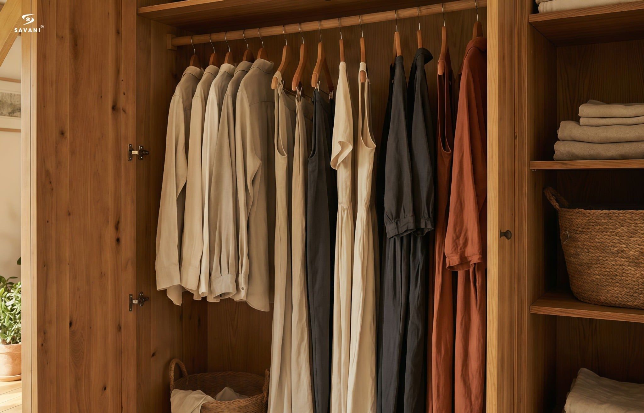 Để giữ vải linen luôn bền đẹp, bạn có thể đặt thêm túi hút ẩm trong tủ quần áo, đặc biệt vào mùa mưa hoặc thời tiết nồm ẩm. Ngoài ra, treo quần áo linen trên móc thay vì gấp sẽ giúp vải thông thoáng hơn, hạn chế nếp nhăn và giữ phom dáng tự nhiên.
