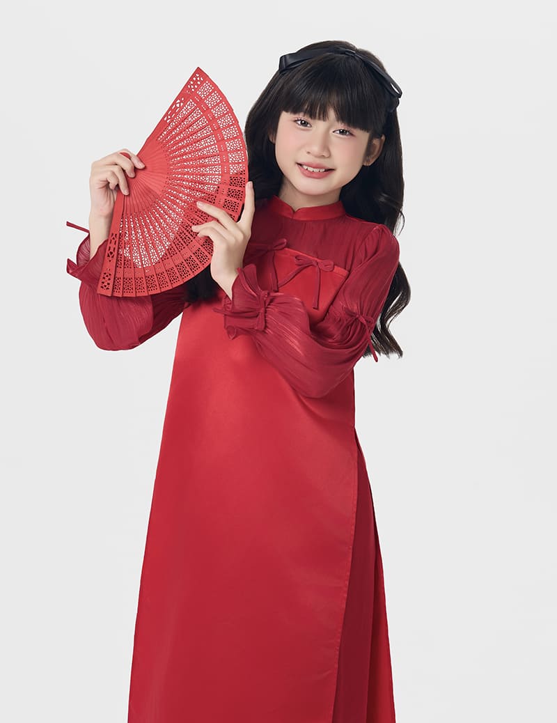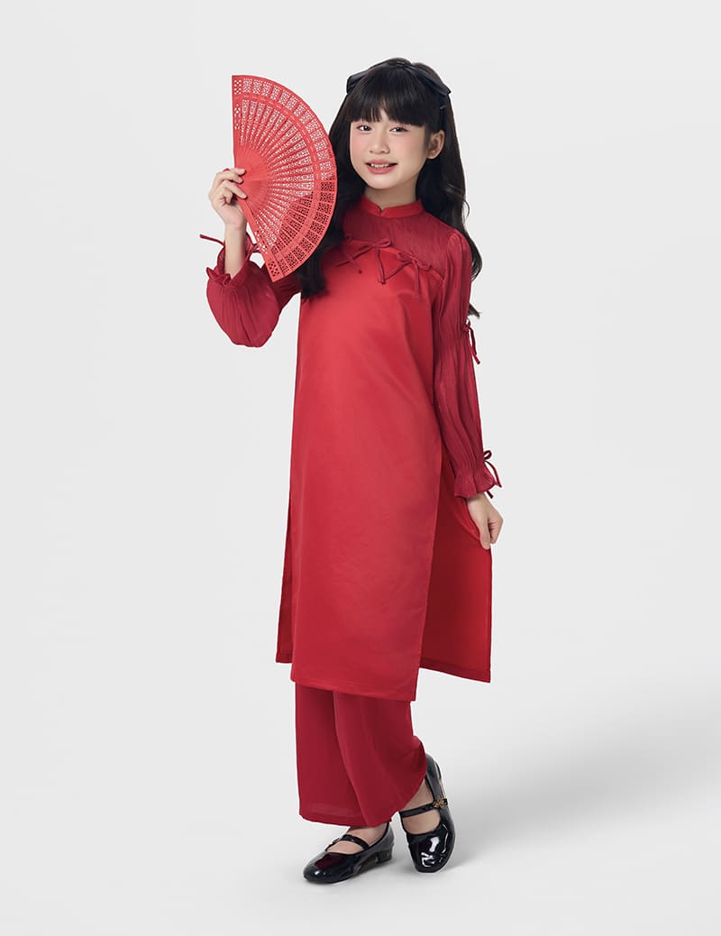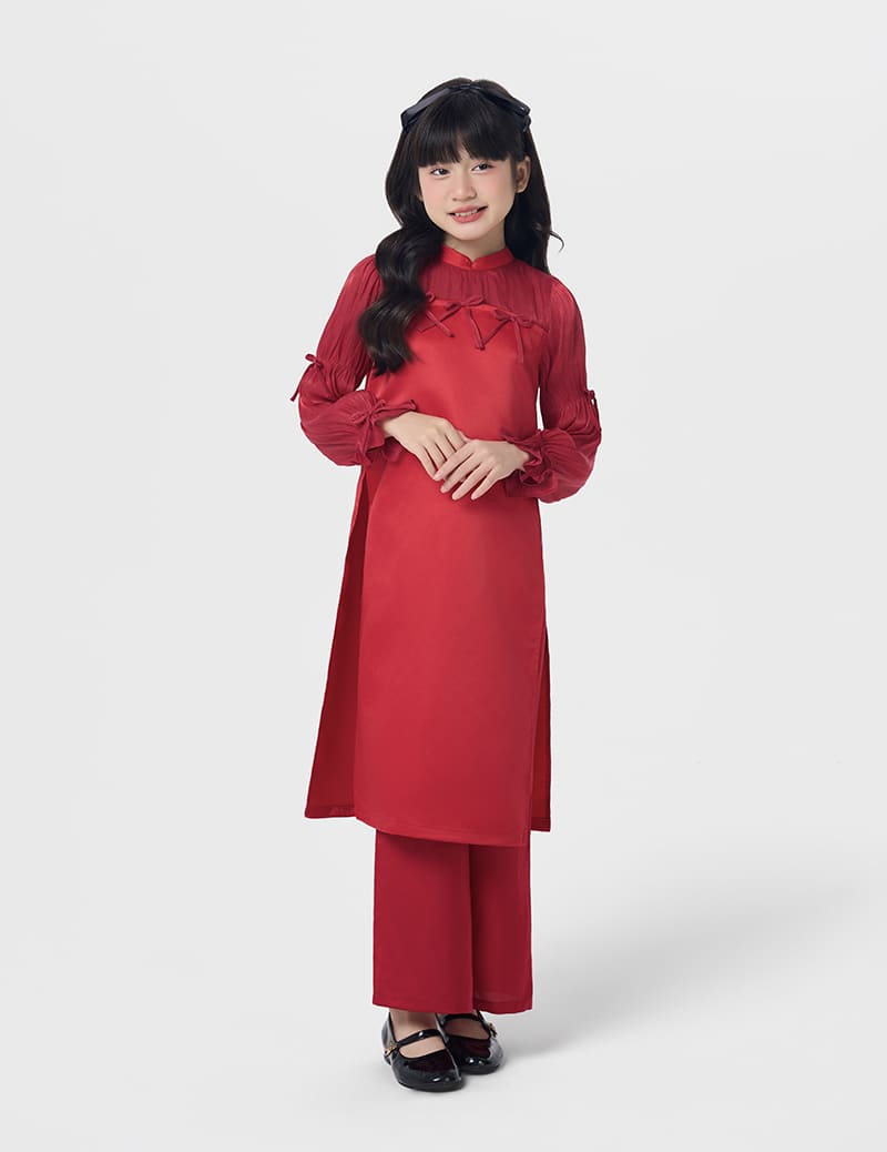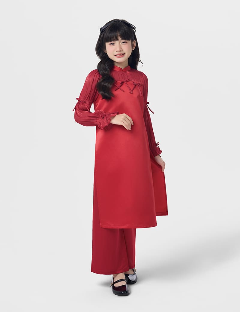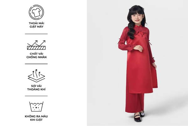 - Áo dài trẻ em với thiết kế đơn giản, đa năng, dễ mặc phom dáng vừa vặn phù hợp nhiều dáng người của trẻ.