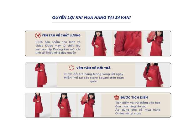 Áo dài trẻ em là một trong những sản phẩm tiên phong được Savani đặc biệt chú trọng về chất liệu. Sản phẩm sử dụng chất liệu 100% polyester mang đến sự ổn định về form dáng và tiết kiệm thời gian chăm sóc quần áo.