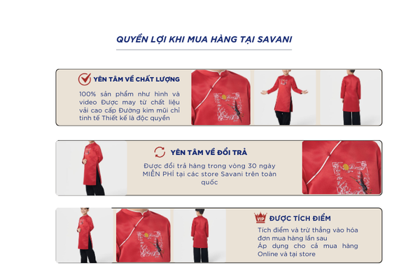 - Hỗ trợ đổi hàng trong vòng 30 ngày và miễn phí tại tất cả chi nhánh thuộc hệ thống thời trang Savani.
