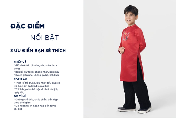 Áo dài trẻ em được xem là một món đồ mà bất kì cha mẹ nào cũng nên lựa cho con. Áo dài là sản phẩm vô cùng cần thiết trong thời điểm thu đông vì áo dài giữ nhiệt tốt, giúp cơ thể luôn ấm áp trong thời tiết lạnh. Đồng thời, cấu trúc sợi dệt thoáng khí giúp hạn chế hầm bí và tích nhiệt, mang lại cảm giác dễ chịu khi mặc cả ngày.