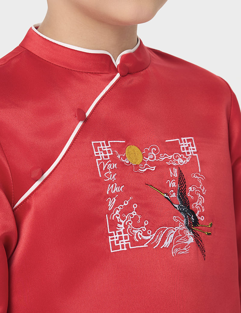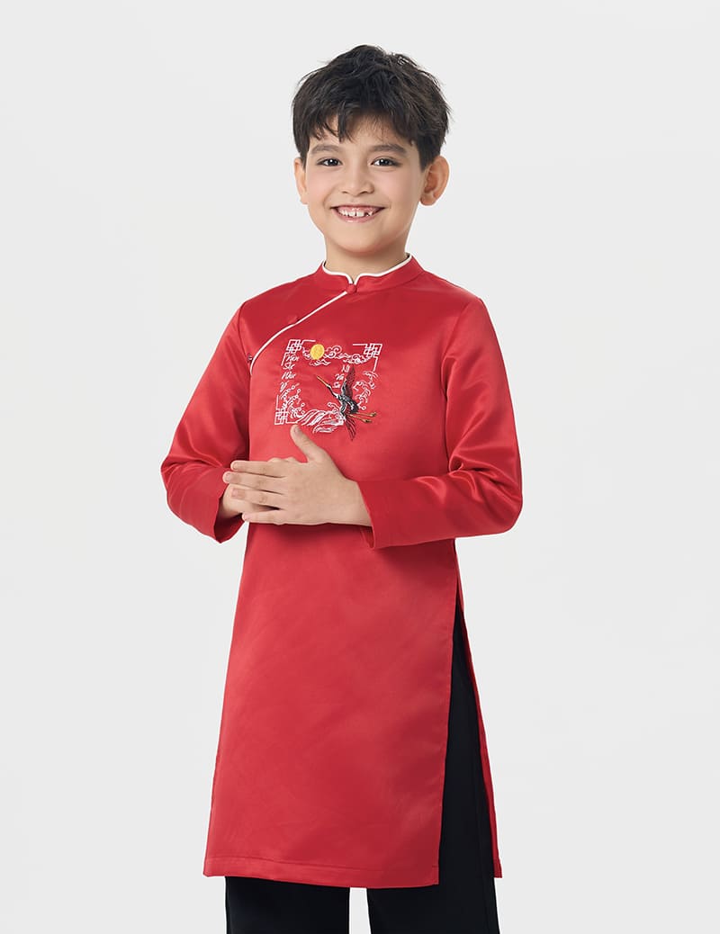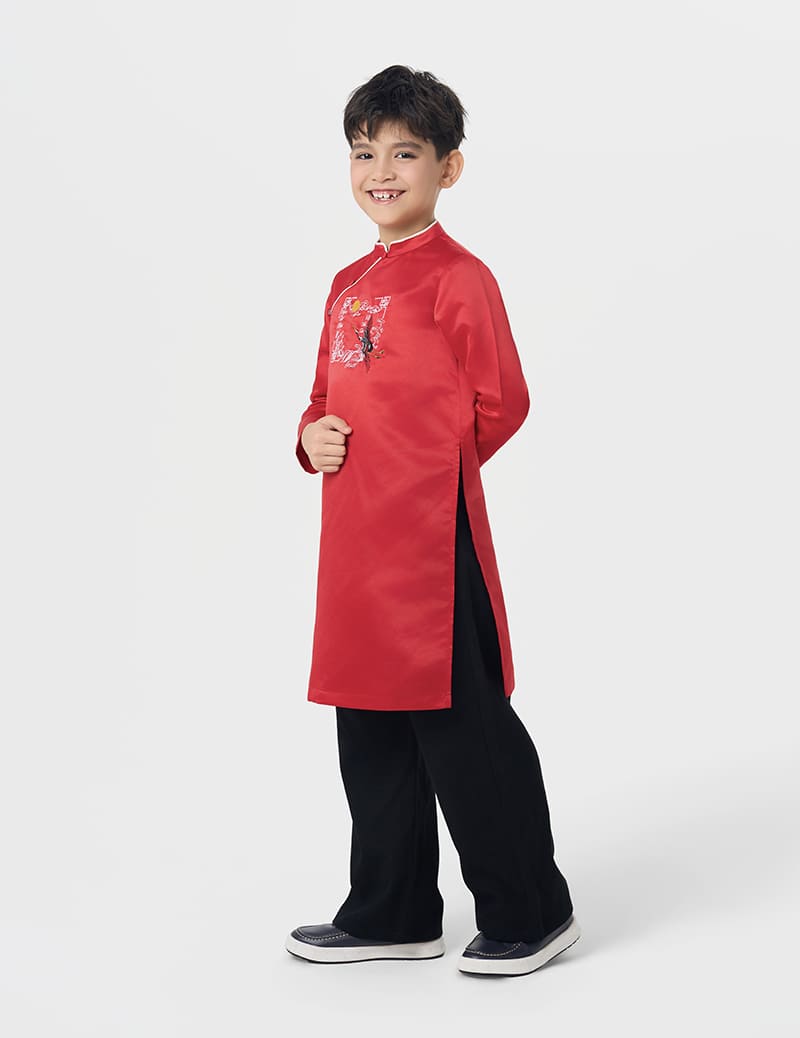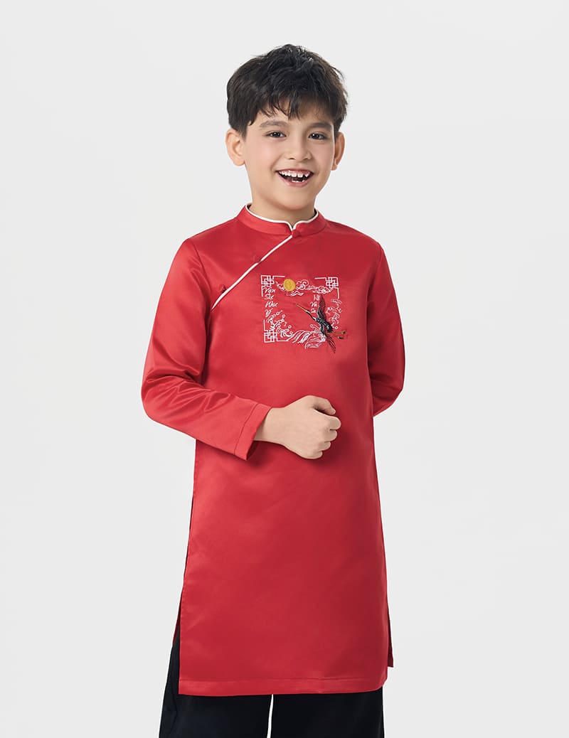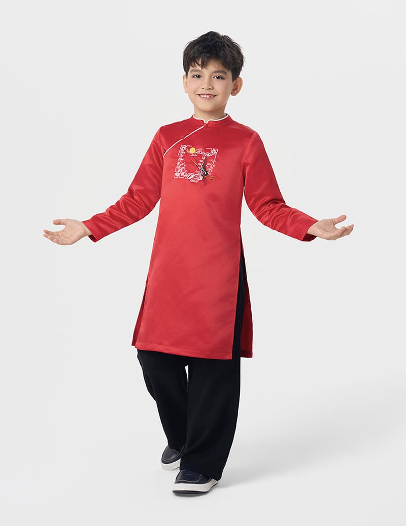 - Áo dài trẻ em với thiết kế đơn giản, đa năng, dễ mặc phom dáng vừa vặn phù hợp nhiều dáng người của trẻ.