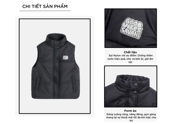 Áo phao trẻ em là một trong những sản phẩm tiên phong được Savani đặc biệt chú trọng về chất liệu. Được sử dụng hoàn toàn bằng Nylon (100%) giúp sản phẩm có các ưu điểm như: Độ bền cao, chống nhăn, chống gió, chống thấm nước, giữ ấm hiệu quả