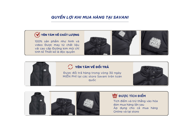 - Hỗ trợ đổi hàng trong vòng 30 ngày và miễn phí tại tất cả chi nhánh thuộc hệ thống thời trang Savani.