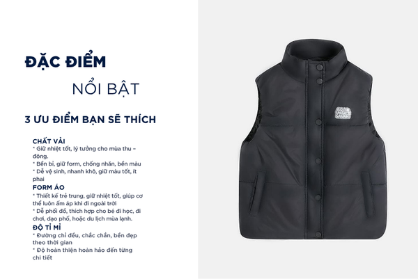 - Áo phao em với thiết kế đơn giản, đa năng, dễ mặc phom dáng vừa vặn phù hợp nhiều dáng người.