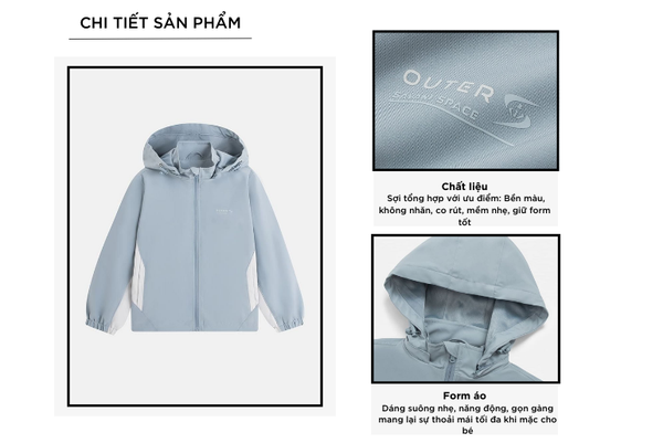 - Áo gió trẻ em với thiết kế đơn giản, đa năng, dễ mặc phom dáng vừa vặn phù hợp nhiều dáng người.