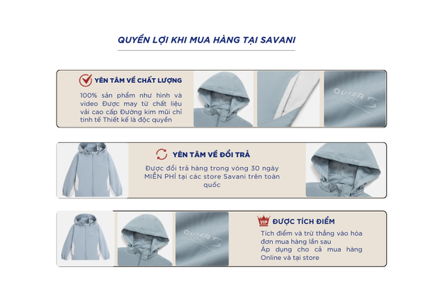 - Hỗ trợ đổi hàng trong vòng 30 ngày và miễn phí tại tất cả chi nhánh thuộc hệ thống thời trang Savani.
