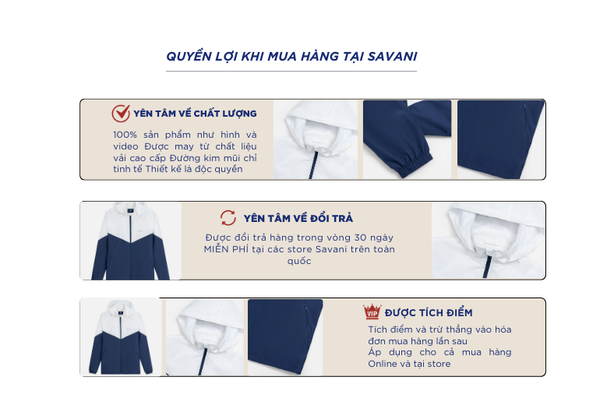 - Hỗ trợ đổi hàng trong vòng 30 ngày và miễn phí tại tất cả chi nhánh thuộc hệ thống thời trang Savani.