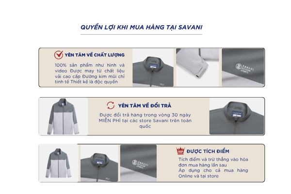 - Hỗ trợ đổi hàng trong vòng 30 ngày và miễn phí tại tất cả chi nhánh thuộc hệ thống thời trang Savani.