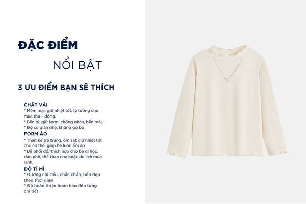 - Màu sắc thanh lịch, dễ kết hợp với quần nỉ, chân váy…Áo phù hợp cho bé mặc ở nhà, đi học, đi chơi,...