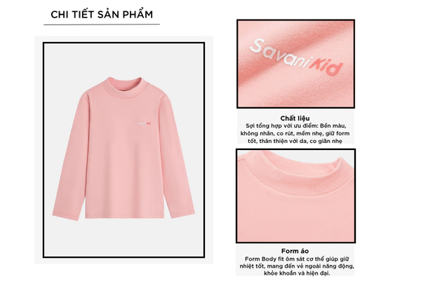 Áo nỉ trẻ em là một trong những sản phẩm tiên phong được Savani đặc biệt chú trọng về chất liệu. Sự kết hợp giữa Polyester (92%) và Spandex (8%) giúp sản phẩm có các ưu điểm như: Độ bền cao, chống nhăn, nhanh khô và giữ màu tốt, co giãn tốt, ôm cơ thể mà vẫn thoải mái.