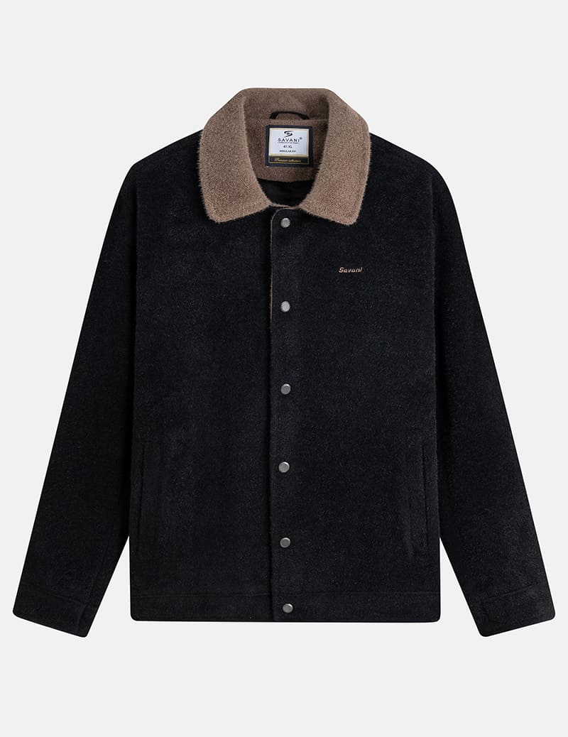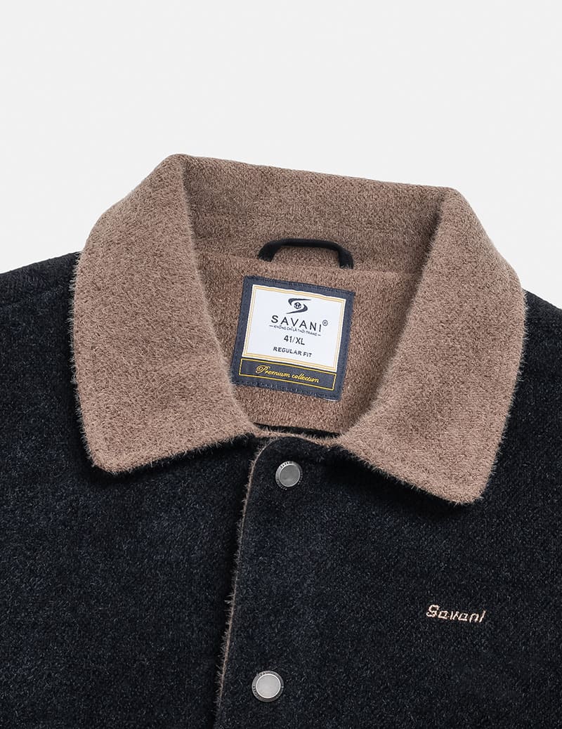 Áo khoác dạ nam cổ bẻ cúc bấm