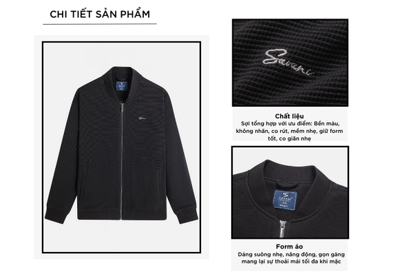 Áo khoác nam là một trong những sản phẩm tiên phong được Savani đặc biệt chú trọng về chất liệu. Sự kết hợp giữa Polyester (95%) và Spandex (5%) giúp sản phẩm có các ưu điểm như: Độ bền cao, chống nhăn, nhanh khô và giữ màu tốt, co giãn tốt, ôm cơ thể mà vẫn thoải mái.