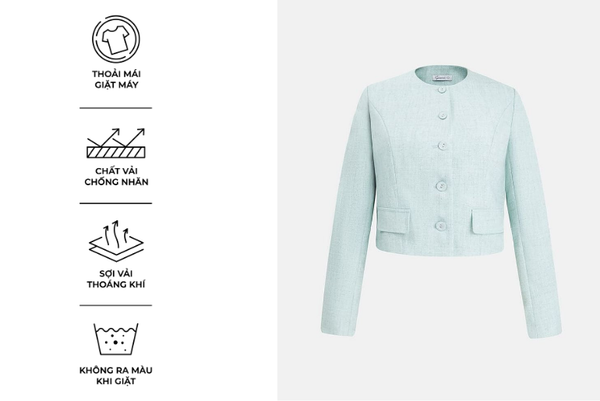 Áo khoác nữ là một trong những sản phẩm tiên phong được Savani đặc biệt chú trọng về chất liệu. Sự kết hợp giữa ba loại sợi Polyester (65%) - Rayon (33%) - Spandex (2%) mang tới những lợi ích: Bền, nhẹ, mịn, thoáng mát và có độ co giãn nhẹ