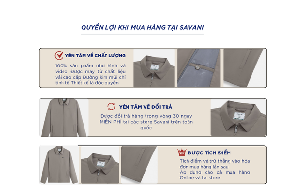 - Hỗ trợ đổi hàng trong vòng 30 ngày và miễn phí tại tất cả chi nhánh thuộc hệ thống thời trang Savani.