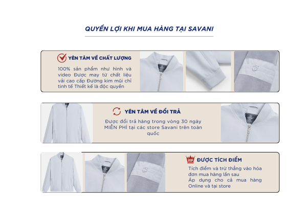 - Hỗ trợ đổi hàng trong vòng 30 ngày và miễn phí tại tất cả chi nhánh thuộc hệ thống thời trang Savani.