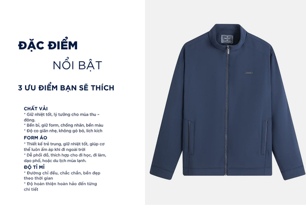Áo khoác nam được xem là một món đồ đa di năng mà bất kì ai cũng nên sở hữu cho riêng mình. Áo khoác là sản phẩm vô cùng cần thiết trong thời điểm thu đông vì áo khoác giữ nhiệt tốt, giúp cơ thể luôn ấm áp trong thời tiết lạnh. Đồng thời, cấu trúc sợi dệt thoáng khí giúp hạn chế hầm bí và tích nhiệt, mang lại cảm giác dễ chịu khi mặc cả ngày.