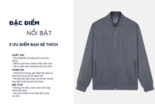 Áo khoác nam được xem là một món đồ đa di năng mà bất kì ai cũng nên sở hữu cho riêng mình. Áo khoác là sản phẩm vô cùng cần thiết trong thời điểm thu đông vì áo khoác giữ nhiệt tốt, giúp cơ thể luôn ấm áp trong thời tiết lạnh. Đồng thời, cấu trúc sợi dệt thoáng khí giúp hạn chế hầm bí và tích nhiệt, mang lại cảm giác dễ chịu khi mặc cả ngày.