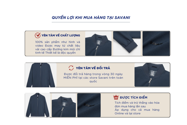 - Hỗ trợ đổi hàng trong vòng 30 ngày và miễn phí tại tất cả chi nhánh thuộc hệ thống thời trang Savani.