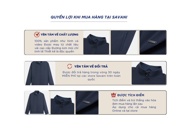 - Hỗ trợ đổi hàng trong vòng 30 ngày và miễn phí tại tất cả chi nhánh thuộc hệ thống thời trang Savani.