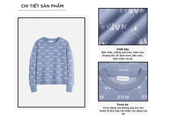 - Áo len trẻ em với thiết kế đơn giản, đa năng, dễ mặc phom dáng vừa vặn phù hợp nhiều dáng người.