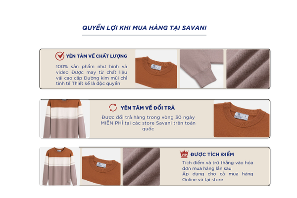 - Hỗ trợ đổi hàng trong vòng 30 ngày và miễn phí tại tất cả chi nhánh thuộc hệ thống thời trang Savani.