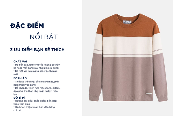 - Nhẹ, dễ mặc và dễ bảo quản: Tổng thể chất liệu tạo nên áo len nhẹ, không nặng nề, dễ giặt và khô nhanh