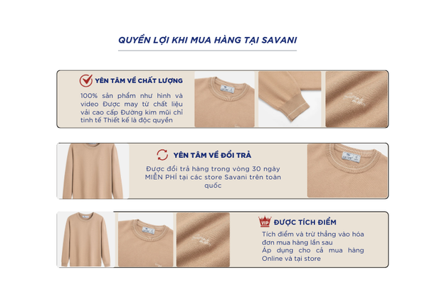 - Hỗ trợ đổi hàng trong vòng 30 ngày và miễn phí tại tất cả chi nhánh thuộc hệ thống thời trang Savani.
