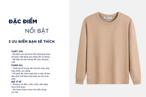 - Nhẹ, dễ mặc và dễ bảo quản: Tổng thể chất liệu tạo nên áo len nhẹ, không nặng nề, dễ giặt và khô nhanh