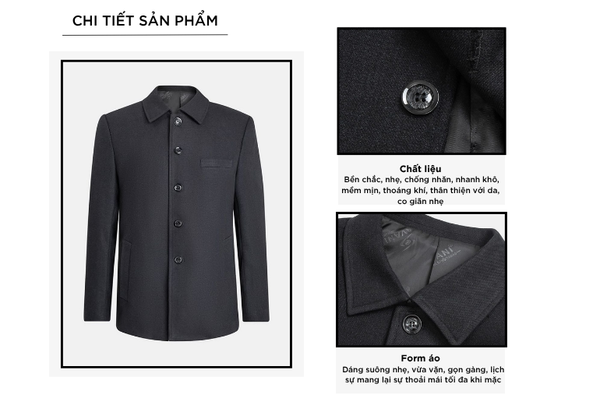- Áo măng tô nam với thiết kế đơn giản, đa năng, dễ mặc phom dáng vừa vặn phù hợp nhiều dáng người.