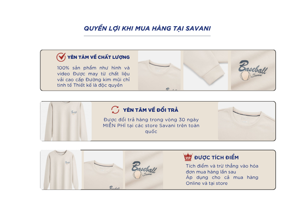 - Hỗ trợ đổi hàng trong vòng 30 ngày và miễn phí tại tất cả chi nhánh thuộc hệ thống thời trang Savani.