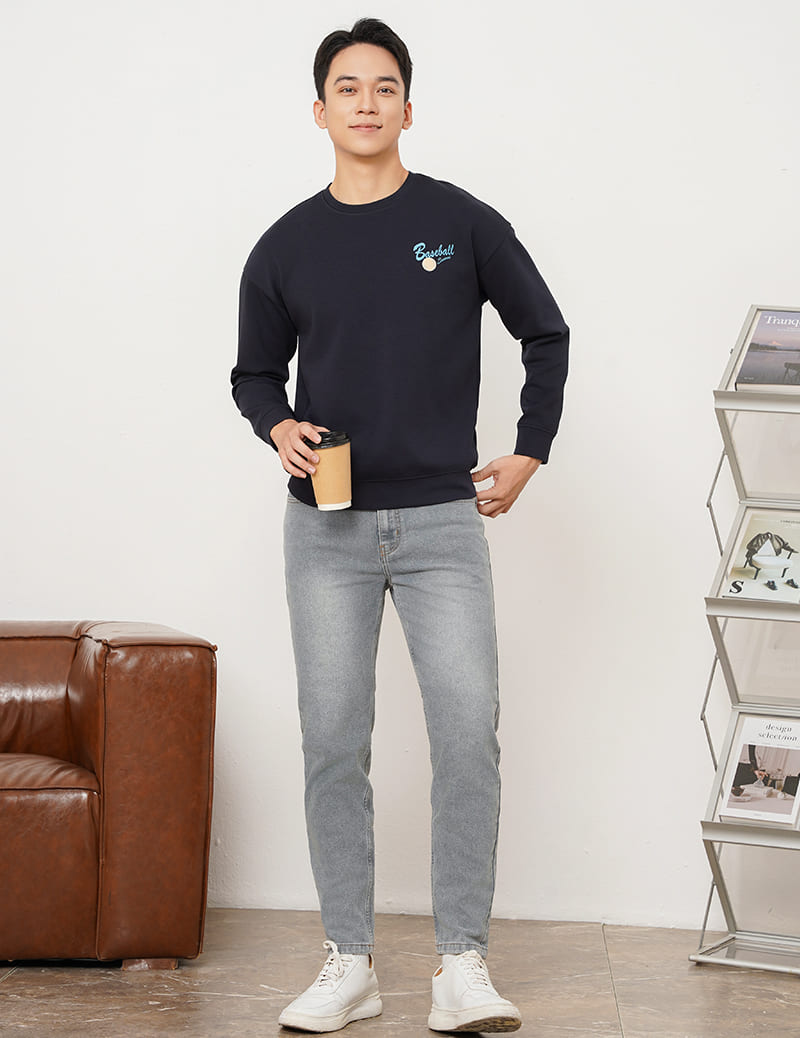 - Áo nỉ nam với thiết kế đơn giản, đa năng, dễ mặc phom dáng vừa vặn phù hợp nhiều dáng người.