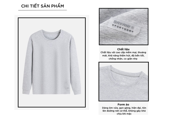 Áo nỉ nam là một trong những sản phẩm tiên phong được Savani đặc biệt chú trọng về chất liệu. Sự kết hợp giữa sợi tự nhiên (Cotton) với sự bền bỉ, chống nhăn của sợi tổng hợp (Polyester) và độ co giãn linh hoạt của Spandex tạo nên một chất liệu mang lại cảm giác thoải mái, giữ form tốt và phù hợp cho các hoạt động năng động.