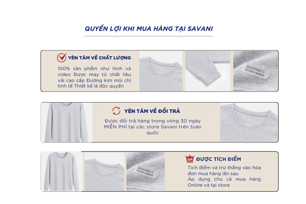 - Hỗ trợ đổi hàng trong vòng 30 ngày và miễn phí tại tất cả chi nhánh thuộc hệ thống thời trang Savani.