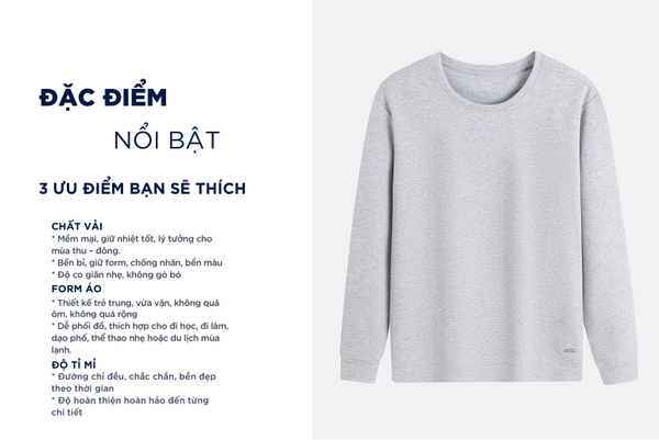 - Form Slim fit ôm vừa, mang lại vẻ ngoài gọn gàng, nam tính, giữ nhiệt tốt giúp cơ thể luôn ấm áp trong trời thu đông