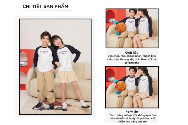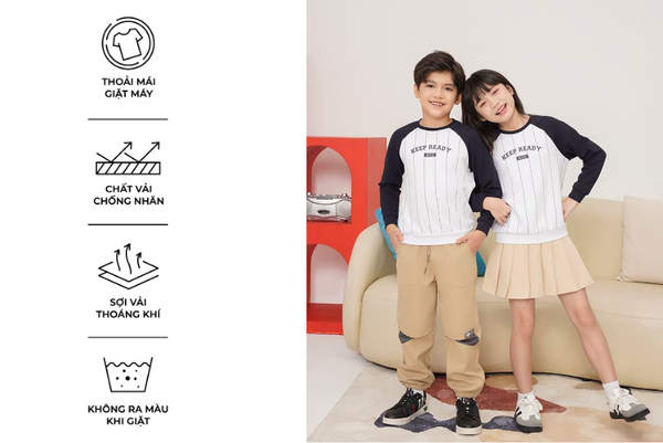Áo nỉ trẻ em là một trong những sản phẩm tiên phong được Savani đặc biệt chú trọng về chất liệu. Sự kết hợp giữa sợi bán tự nhiên (Rayon) với sự bền bỉ, chống nhăn của sợi tổng hợp (Polyester) và độ co giãn linh hoạt của Spandex tạo nên một chất liệu mang lại cảm giác thoải mái, giữ form tốt và phù hợp cho các hoạt động năng động.