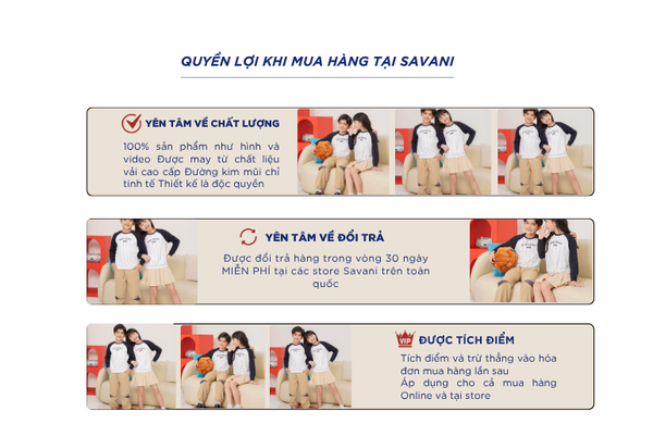 - Hỗ trợ đổi hàng trong vòng 30 ngày và miễn phí tại tất cả chi nhánh thuộc hệ thống thời trang Savani.