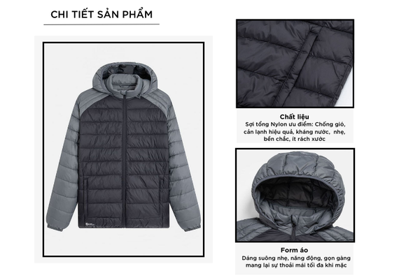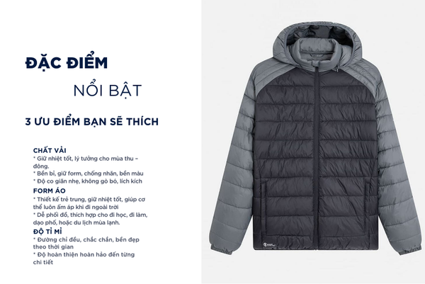 - Áo phao nam với thiết kế đơn giản, đa năng, dễ mặc phom dáng vừa vặn phù hợp nhiều dáng người.