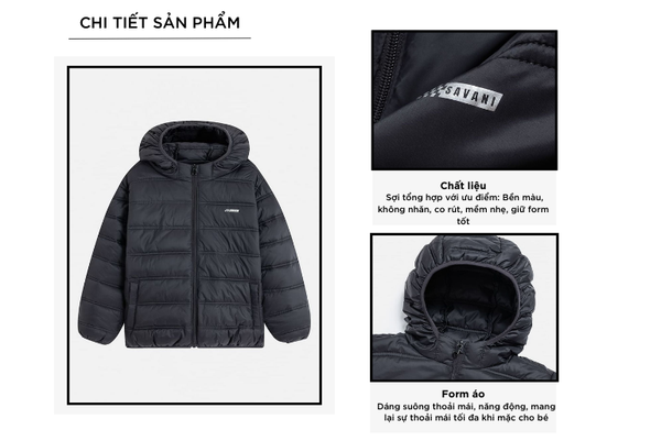 Áo phao trẻ em là một trong những sản phẩm tiên phong được Savani đặc biệt chú trọng về chất liệu. Được sử dụng hoàn toàn bằng Nylon (100%) giúp sản phẩm có các ưu điểm như: Độ bền cao, chống nhăn, chống gió, chống thấm nước, giữ ấm hiệu quả