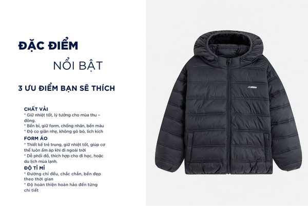 Áo phao trẻ em được xem là một món đồ mà bất kì cha mẹ nào cũng nên lựa cho con. Áo phao là sản phẩm vô cùng cần thiết trong thời điểm thu đông vì sảm phẩm giữ nhiệt tốt, giúp cơ thể luôn ấm áp trong thời tiết lạnh. Đồng thời, cấu trúc sợi dệt thoáng khí giúp hạn chế hầm bí và tích nhiệt, mang lại cảm giác dễ chịu khi mặc cả ngày.