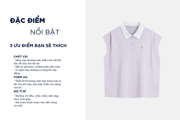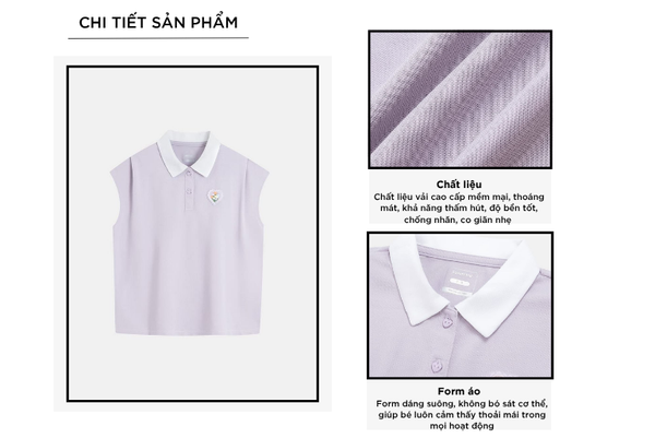 - Áo polo trẻ em với thiết kế đơn giản, đa năng, dễ mặc phom dáng vừa vặn phù hợp với các bé năng động hoạt bát.