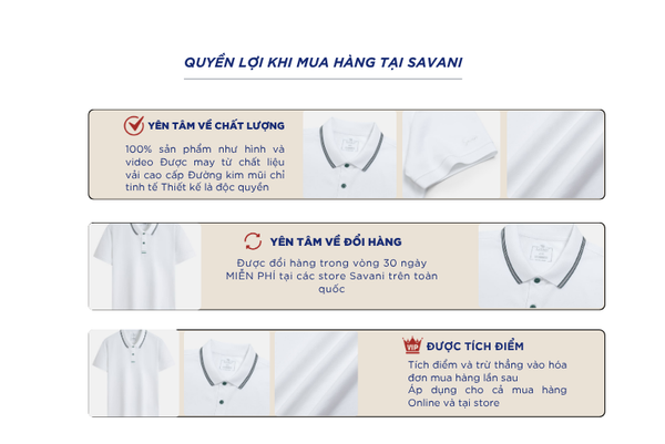 - Hỗ trợ đổi hàng trong vòng 30 ngày và miễn phí tại tất cả chi nhánh thuộc hệ thống thời trang Savani.