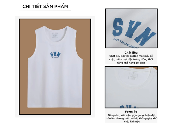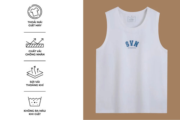 Áo ba lỗ nam là một trong những sản phẩm tiên phong được Savani đặc biệt chú trọng về chất liệu. Sự kết hợp giữa sợi Cotton tự nhiên chiếm phần lớn và một lượng nhỏ Spandex nhằm tăng độ co giãn và linh hoạt. Sự pha trộn này tạo nên một loại vải có bề mặt mềm mại, thấm hút tốt nhưng vẫn giữ được độ đàn hồi cao, mang lại cảm giác thoải mái suốt ngày dài.