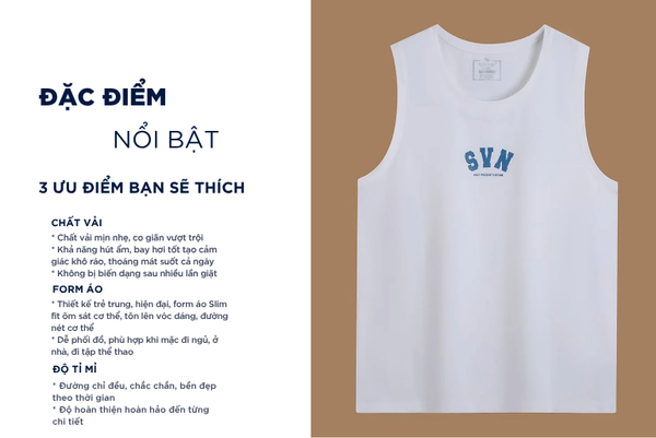 - Áo ba lỗ nam với thiết kế đơn giản, đa năng, dễ mặc phom dáng vừa vặn phù hợp nhiều dáng người.