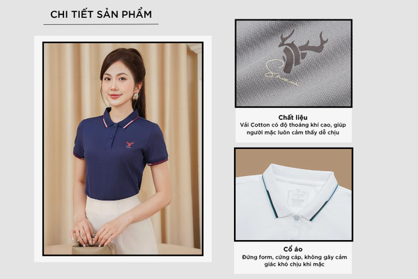 - Áo polo nữ mang thiết kế thanh lịch, dễ phối đồ, phù hợp với nhiều hoàn cảnh từ công sở đến dạo phố.